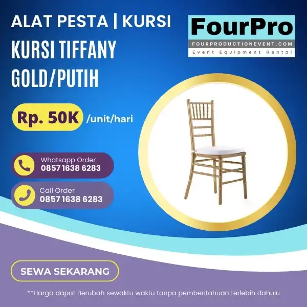 Sewa Kursi Tiffany Gold/Putih + Pita